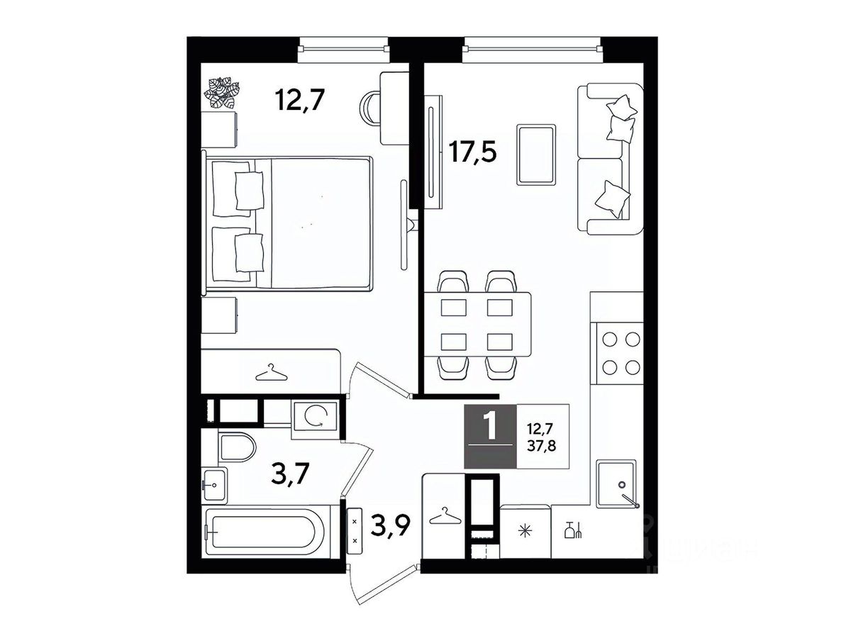 В продаже 1-комнатная квартира от застройщика! Мкр. "DOGMA PARK" г. Краснодар, Литер 24 Срок сдачи: 4 кв. 2027, общей площадью 37.8 кв.м., на 14 этаже.