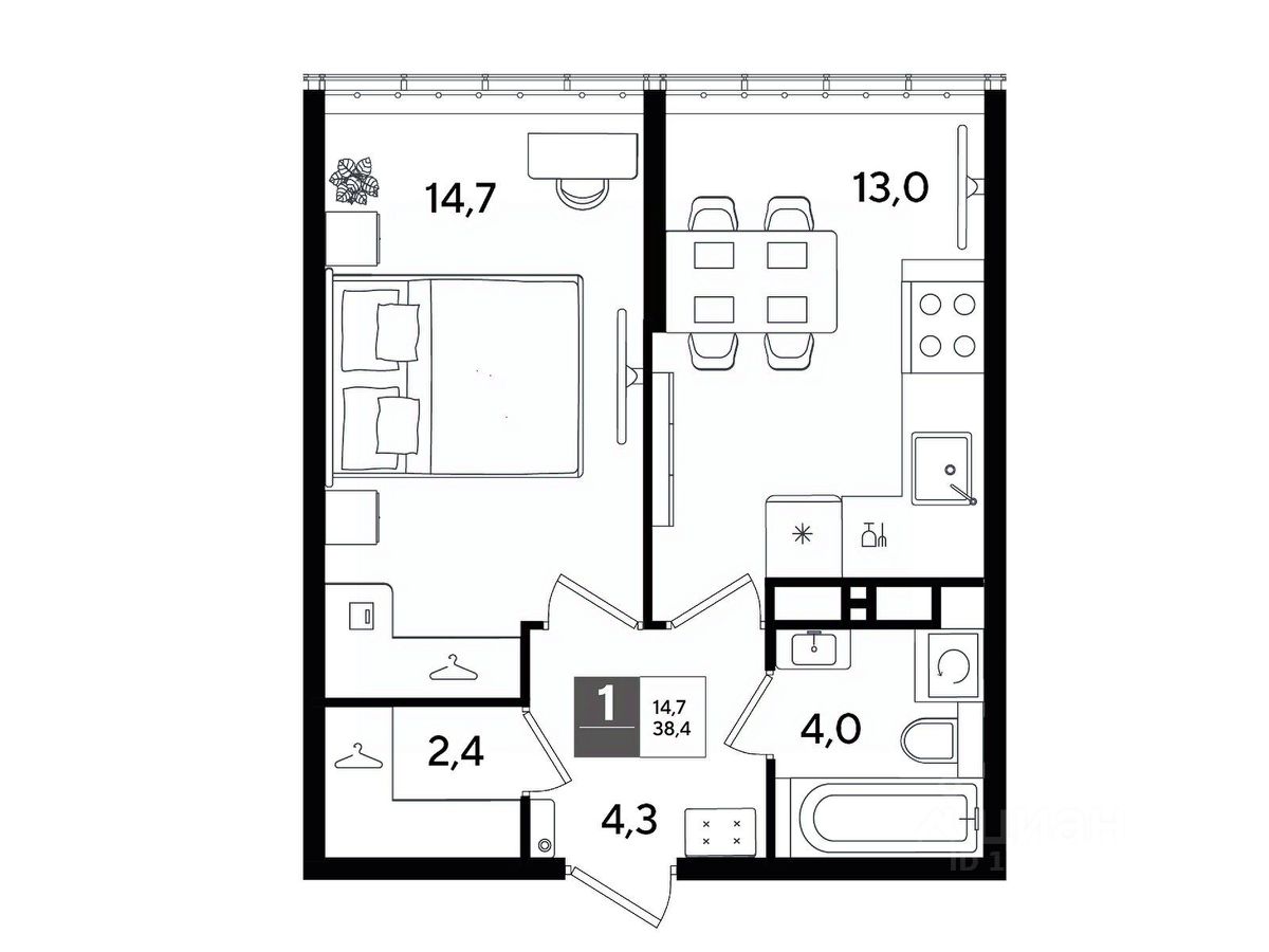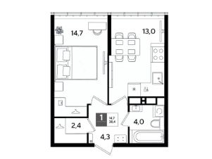 В продаже 1-комнатная квартира от застройщика! Мкр. "DOGMA PARK" г. Краснодар, Литер 24 Срок сдачи: 4 кв. 2027, общей площадью 38.4 кв.м., на 16 этаже.