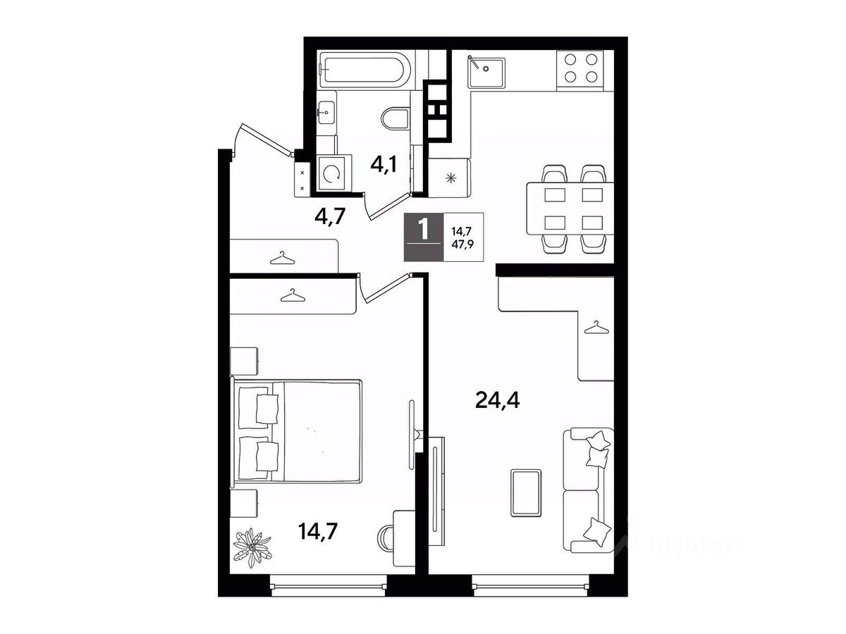 В продаже 1-комнатная квартира от застройщика! Мкр. "DOGMA PARK" г. Краснодар, Литер 23 Срок сдачи: 4 кв. 2027, общей площадью 47.9 кв.м., на 4 этаже.