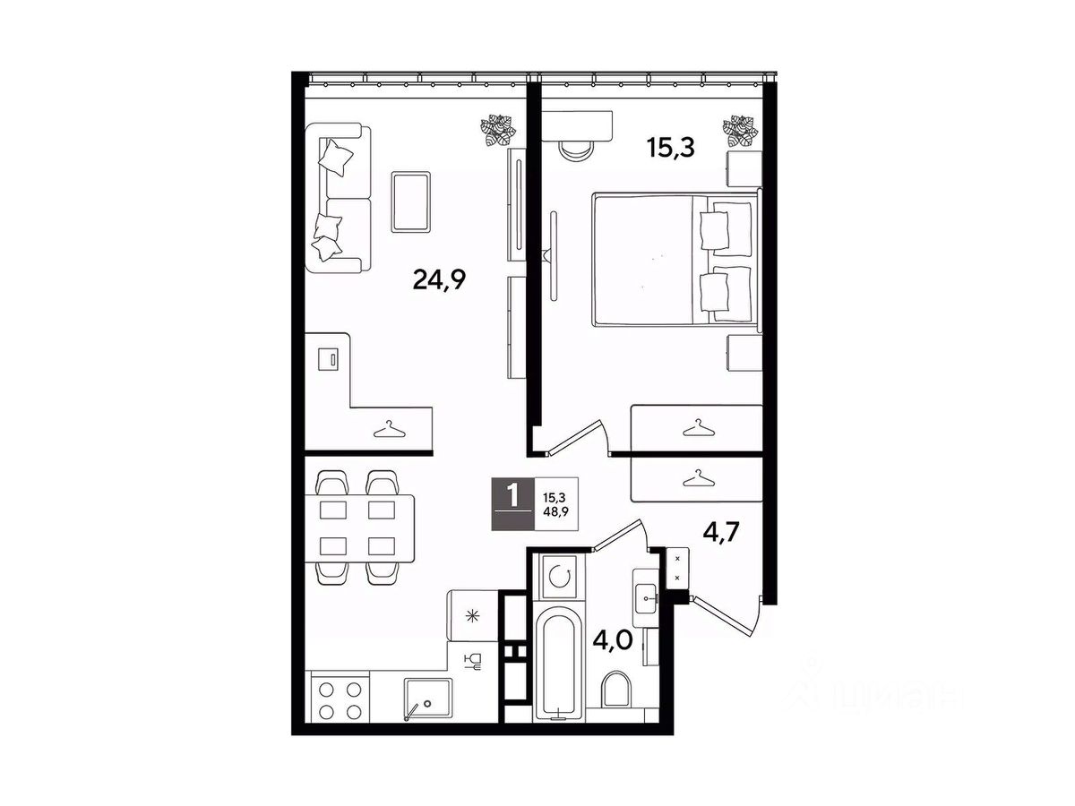 В продаже 1-комнатная квартира от застройщика! Мкр. "DOGMA PARK" г. Краснодар, Литер 22 Срок сдачи: 4 кв. 2027, общей площадью 48.9 кв.м., на 16 этаже.