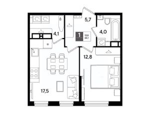 В продаже 1-комнатная квартира от застройщика! Мкр. "DOGMA PARK" г. Краснодар, Литер 22 Срок сдачи: 4 кв. 2027, общей площадью 44.1 кв.м., на 14 этаже.