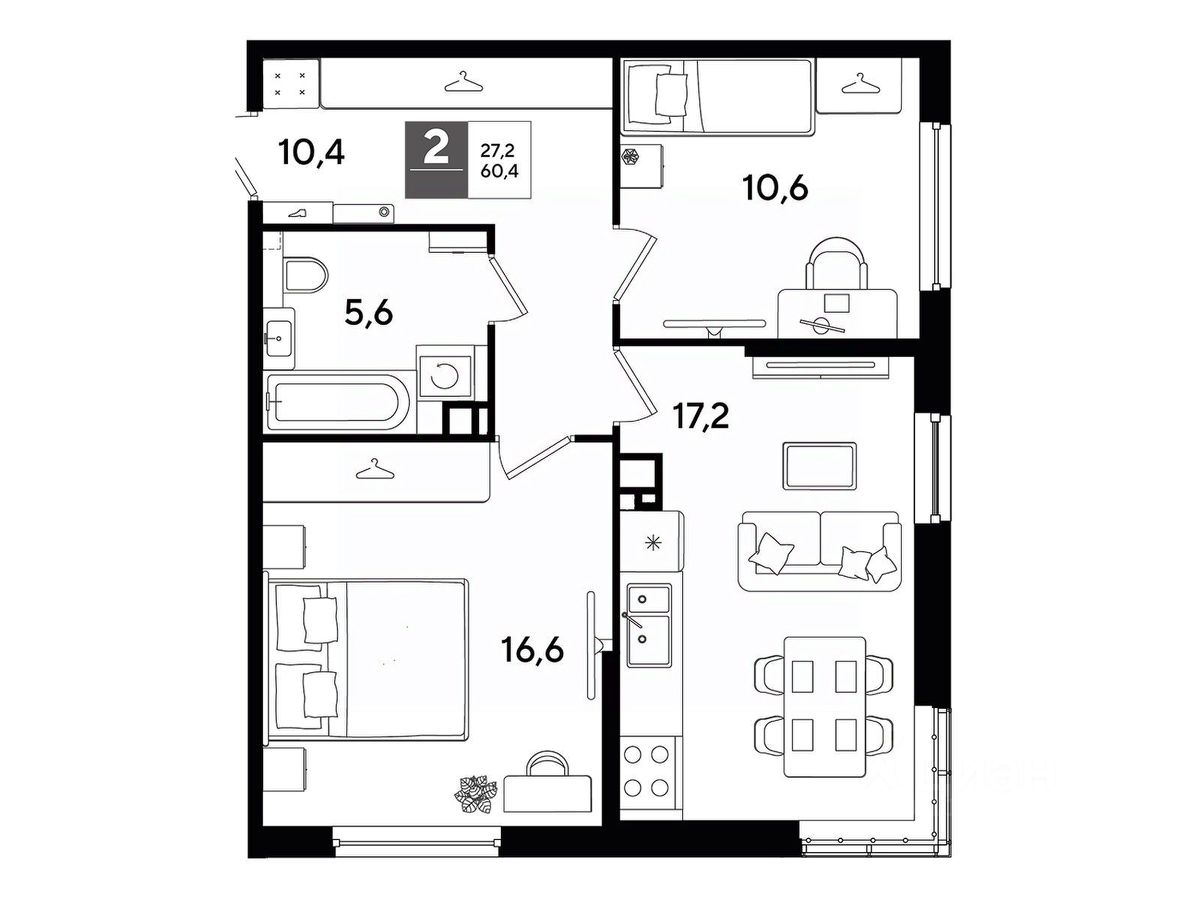 В продаже 2-комнатная квартира от застройщика! Мкр. "DOGMA PARK" г. Краснодар, Литер 22 Срок сдачи: 4 кв. 2027, общей площадью 60.4 кв.м., на 6 этаже.