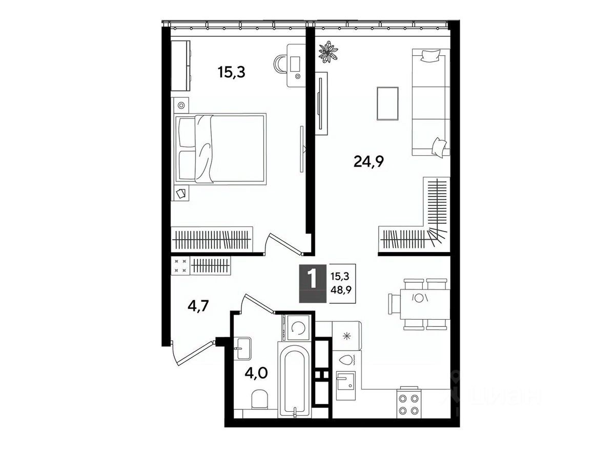 В продаже 1-комнатная квартира от застройщика! Мкр. "DOGMA PARK" г. Краснодар, Литер 19 Срок сдачи: 4 кв. 2027, общей площадью 46.9 кв.м., на 16 этаже.
