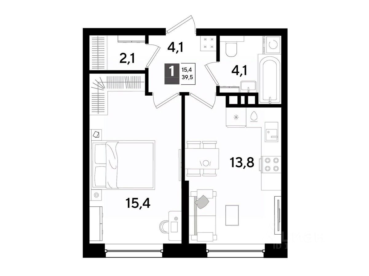 В продаже 1-комнатная квартира от застройщика! Мкр. "DOGMA PARK" г. Краснодар, Литер 33 Срок сдачи: 3 кв. 2027, общей площадью 39.5 кв.м., на 6 этаже.
