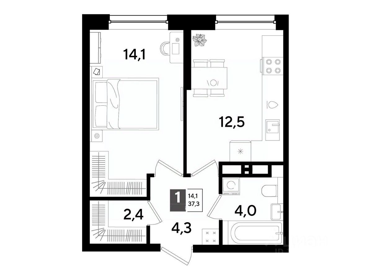 В продаже 1-комнатная квартира от застройщика! Мкр. "DOGMA PARK" г. Краснодар, Литер 33 Срок сдачи: 3 кв. 2027, общей площадью 37.3 кв.м., на 12 этаже.
