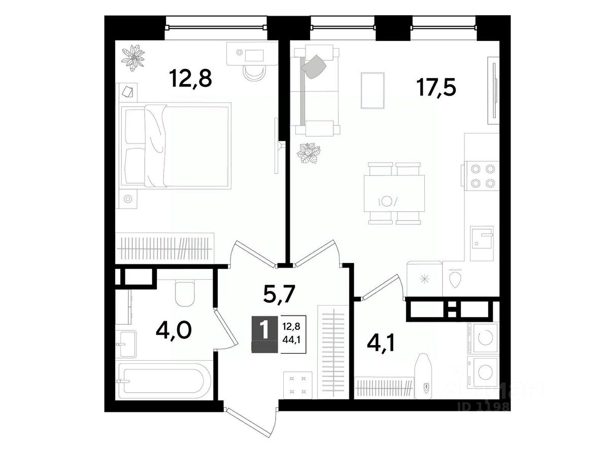В продаже 1-комнатная квартира от застройщика! Мкр. "DOGMA PARK" г. Краснодар, Литер 33 Срок сдачи: 3 кв. 2027, общей площадью 44.1 кв.м., на 14 этаже.