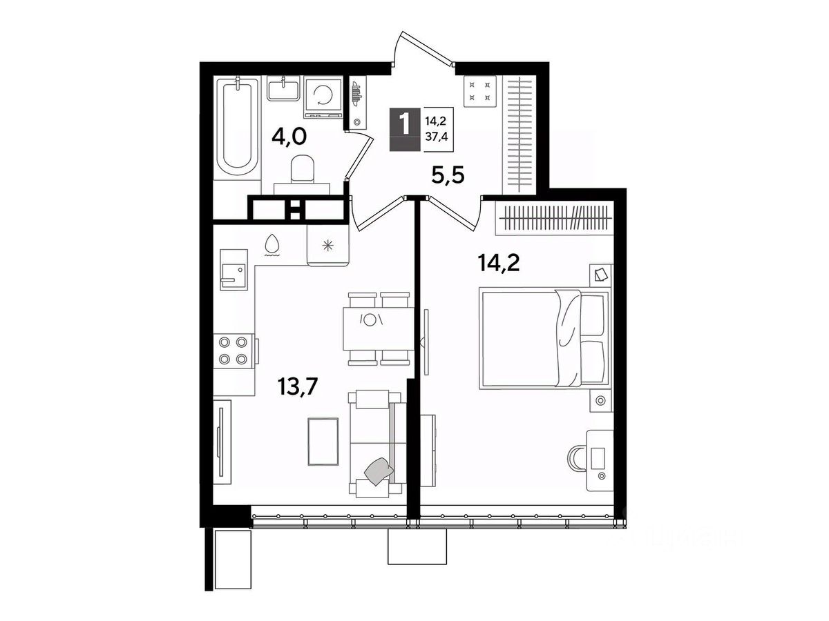 В продаже 1-комнатная квартира от застройщика! Мкр. "DOGMA PARK" г. Краснодар, Литер 30 Срок сдачи: 3 кв. 2027, общей площадью 37.4 кв.м., на 16 этаже.