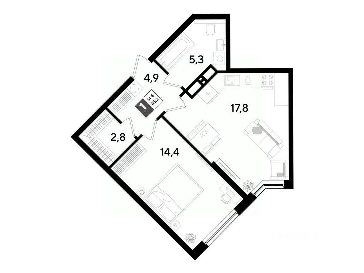 В продаже 1-комнатная квартира от застройщика! Мкр. "DOGMA PARK" г. Краснодар, Литер 30 Срок сдачи: 3 кв. 2027, общей площадью 45.2 кв.м., на 12 этаже.