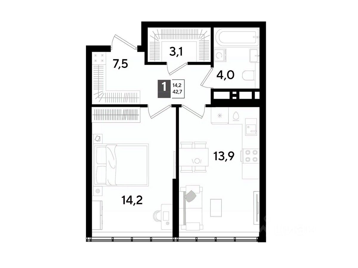 В продаже 1-комнатная квартира от застройщика! Мкр. "DOGMA PARK" г. Краснодар, Литер 30 Срок сдачи: 3 кв. 2027, общей площадью 42.7 кв.м., на 16 этаже.