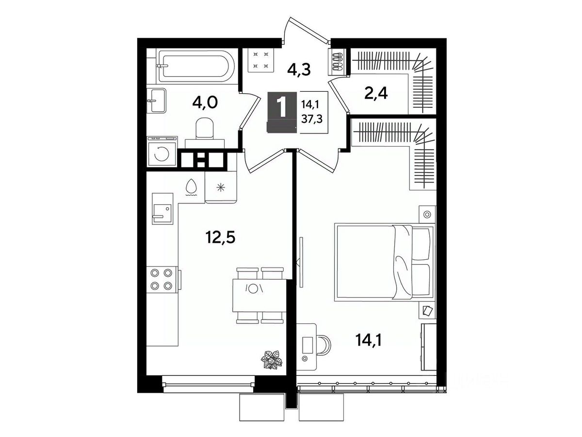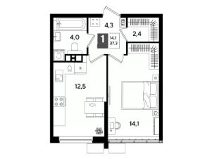 В продаже 1-комнатная квартира от застройщика! Мкр. "DOGMA PARK" г. Краснодар, Литер 35 Срок сдачи: 4 кв. 2027, общей площадью 37.3 кв.м., на 12 этаже.