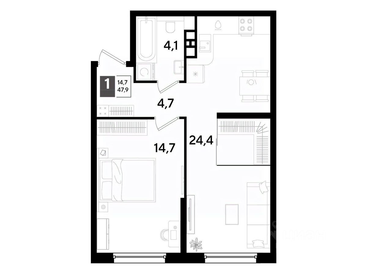 В продаже 1-комнатная квартира от застройщика! Мкр. "DOGMA PARK" г. Краснодар, Литер 35 Срок сдачи: 4 кв. 2027, общей площадью 47.9 кв.м., на 4 этаже.