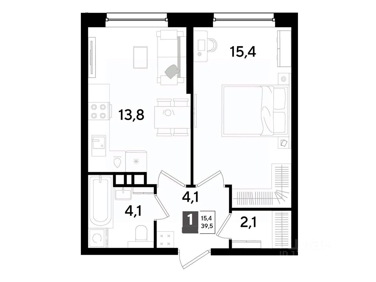 В продаже 1-комнатная квартира от застройщика! Мкр. "DOGMA PARK" г. Краснодар, Литер 35 Срок сдачи: 4 кв. 2027, общей площадью 39.5 кв.м., на 6 этаже.