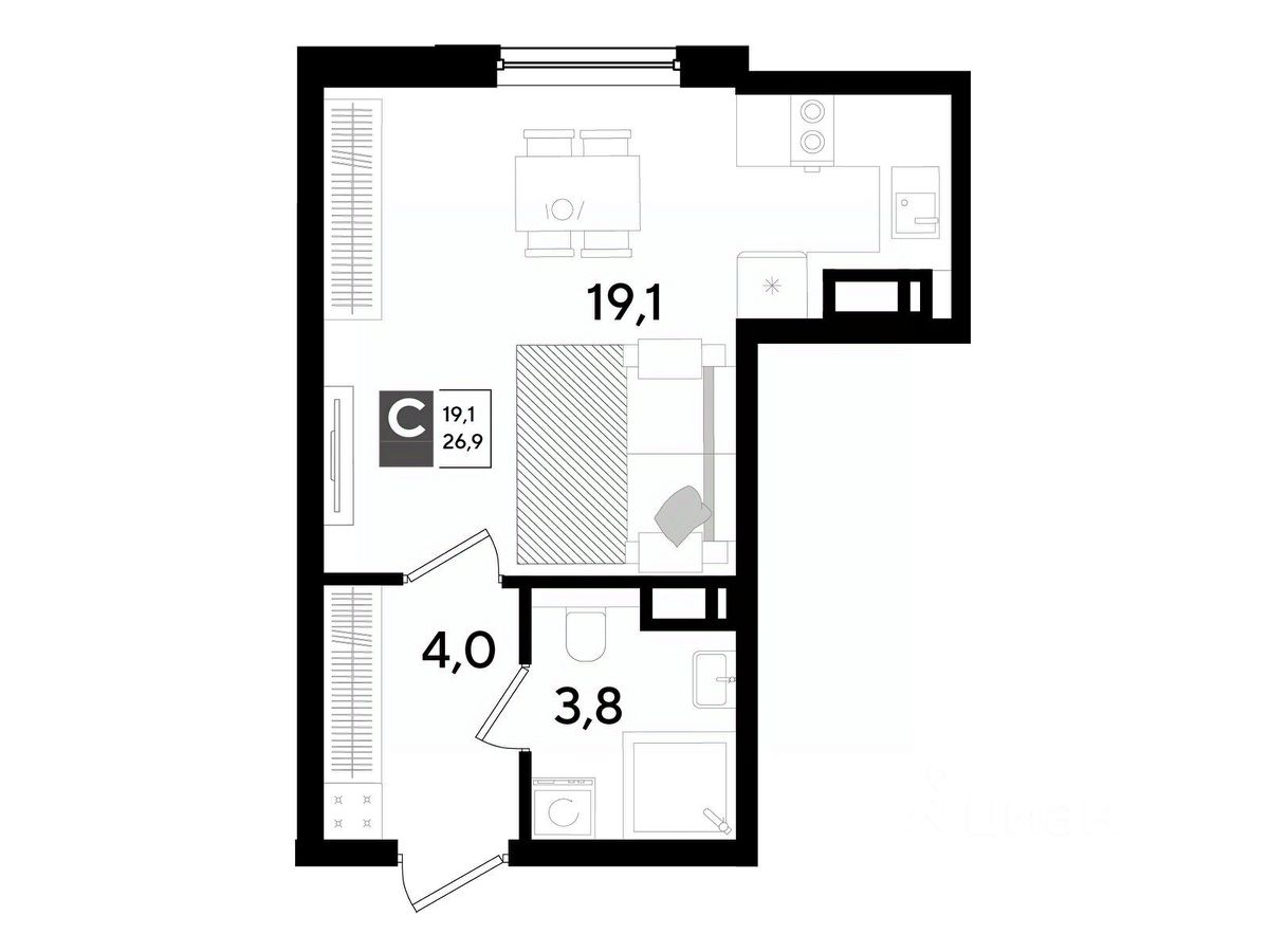 В продаже квартира-студия от застройщика! Мкр. "DOGMA PARK" г. Краснодар, Литер 36 Срок сдачи: 4 кв. 2027, общей площадью 26.9 кв.м., на 11 этаже.