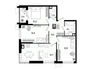 В продаже 3-комнатная квартира от застройщика! Мкр. "DOGMA PARK" г. Краснодар, Литер 34 Срок сдачи: 4 кв. 2027, общей площадью 70 кв.м., на 7 этаже.