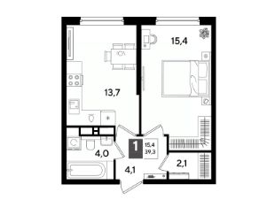 В продаже 1-комнатная квартира от застройщика! Мкр. "DOGMA PARK" г. Краснодар, Литер 34 Срок сдачи: 4 кв. 2027, общей площадью 39.3 кв.м., на 16 этаже.