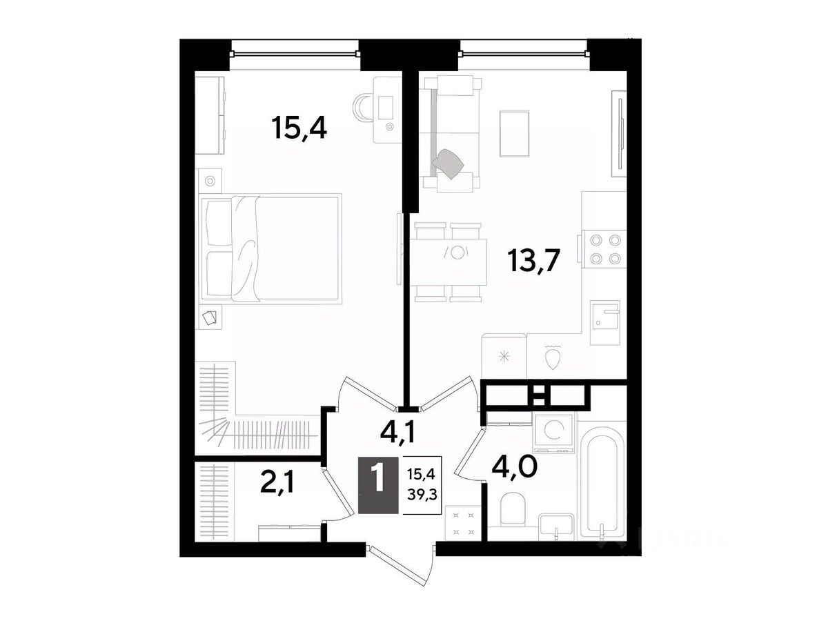 В продаже 1-комнатная квартира от застройщика! Мкр. "DOGMA PARK" г. Краснодар, Литер 34 Срок сдачи: 4 кв. 2027, общей площадью 39.3 кв.м., на 12 этаже.
