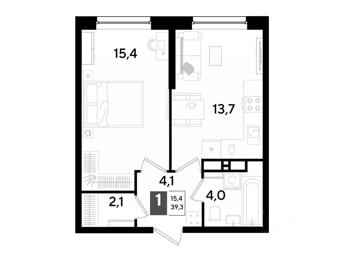В продаже 1-комнатная квартира от застройщика! Мкр. "DOGMA PARK" г. Краснодар, Литер 34 Срок сдачи: 4 кв. 2027, общей площадью 39.3 кв.м., на 14 этаже.