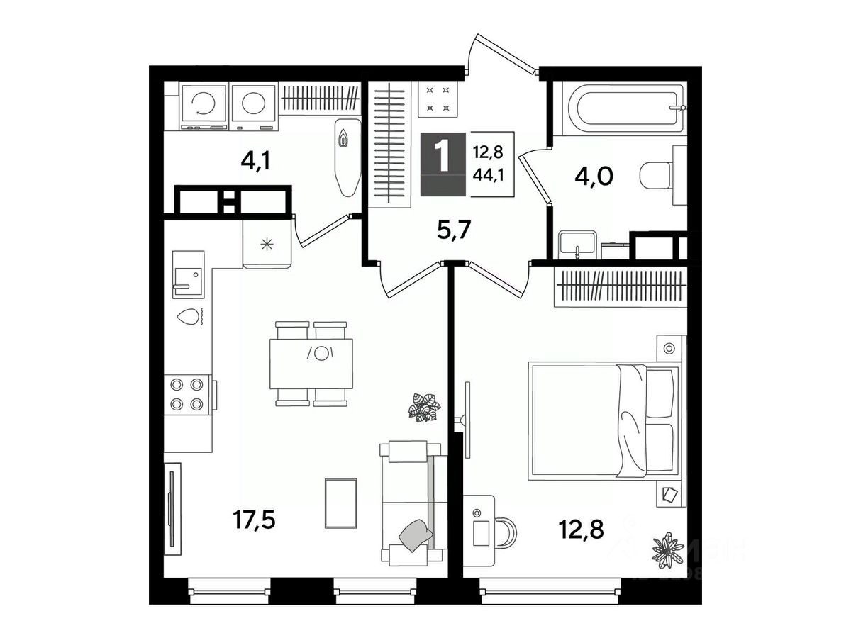 В продаже 1-комнатная квартира от застройщика! Мкр. "DOGMA PARK" г. Краснодар, Литер 34 Срок сдачи: 4 кв. 2027, общей площадью 44.1 кв.м., на 16 этаже.