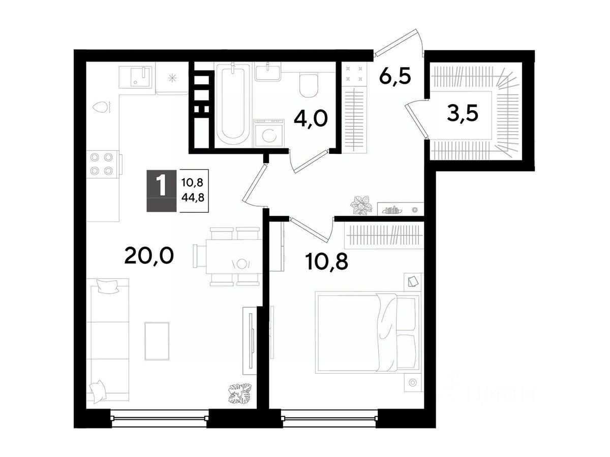 В продаже 1-комнатная квартира от застройщика! Мкр. "DOGMA PARK" г. Краснодар, Литер 34 Срок сдачи: 4 кв. 2027, общей площадью 44.8 кв.м., на 12 этаже.