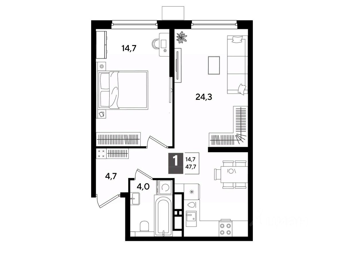 В продаже 1-комнатная квартира от застройщика! Мкр. "DOGMA PARK" г. Краснодар, Литер 34 Срок сдачи: 4 кв. 2027, общей площадью 47.7 кв.м., на 16 этаже.