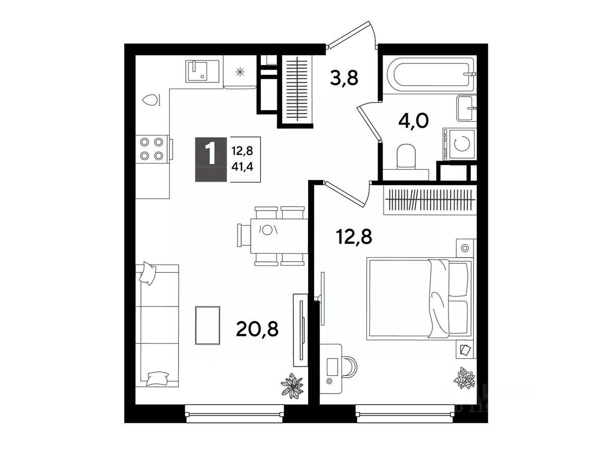 В продаже 1-комнатная квартира от застройщика! Мкр. "DOGMA PARK" г. Краснодар, Литер 34 Срок сдачи: 4 кв. 2027, общей площадью 41.4 кв.м., на 14 этаже.