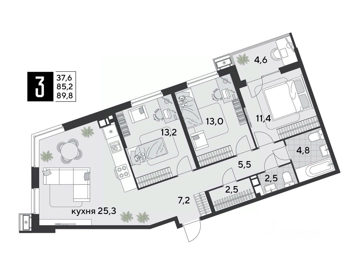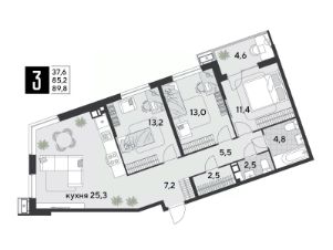Срок сдачи: 1 кв. 2026, общей площадью 89.8 кв.м., на 3 этаже.
