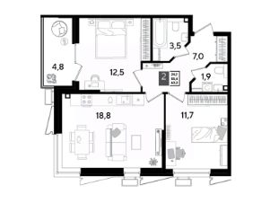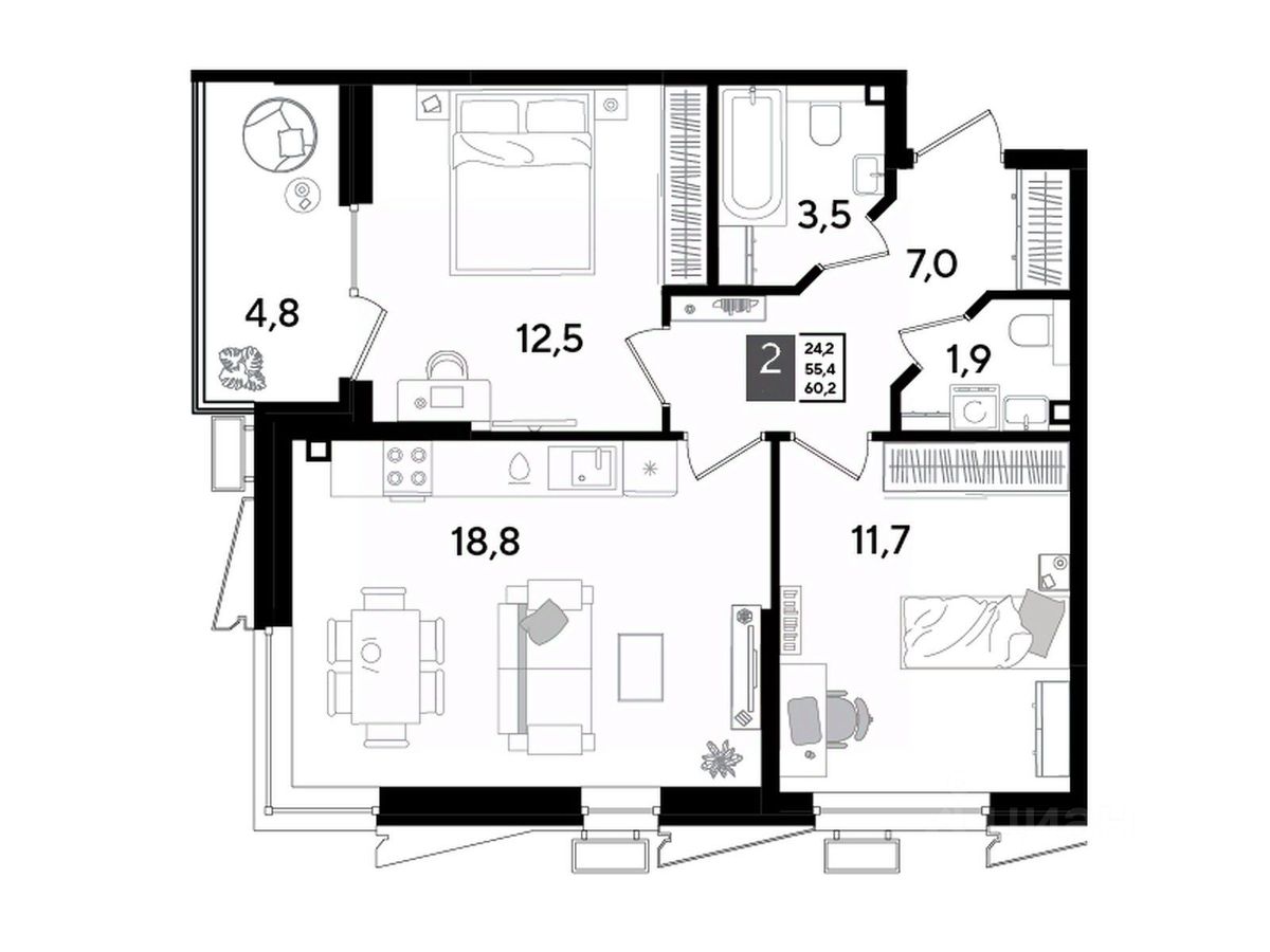 Срок сдачи: 1 кв. 2026, общей площадью 60.2 кв.м., на 2 этаже.