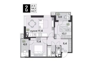 Срок сдачи: 1 кв. 2026, общей площадью 62.9 кв.м., на 6 этаже.