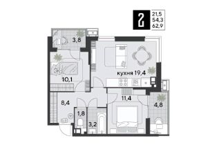 Срок сдачи: 1 кв. 2026, общей площадью 62.9 кв.м., на 8 этаже.