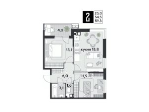 Срок сдачи: 1 кв. 2026, общей площадью 59.3 кв.м., на 3 этаже.