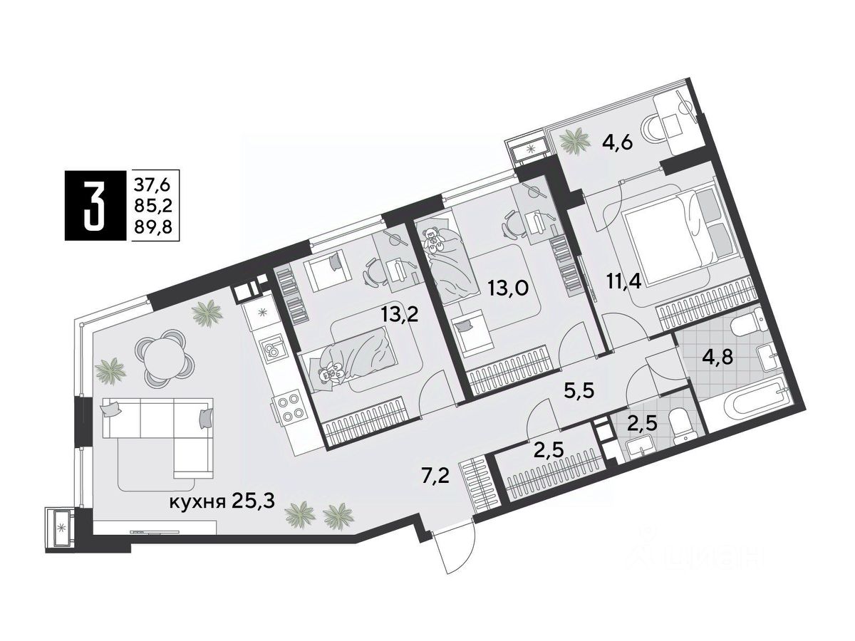 В продаже 3-комнатная квартира от застройщика! ЖК "Парк Победы 2", г. Краснодар, Литер 19
