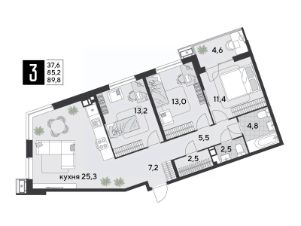 Срок сдачи: 1 кв. 2026, общей площадью 89.8 кв.м., на 4 этаже.