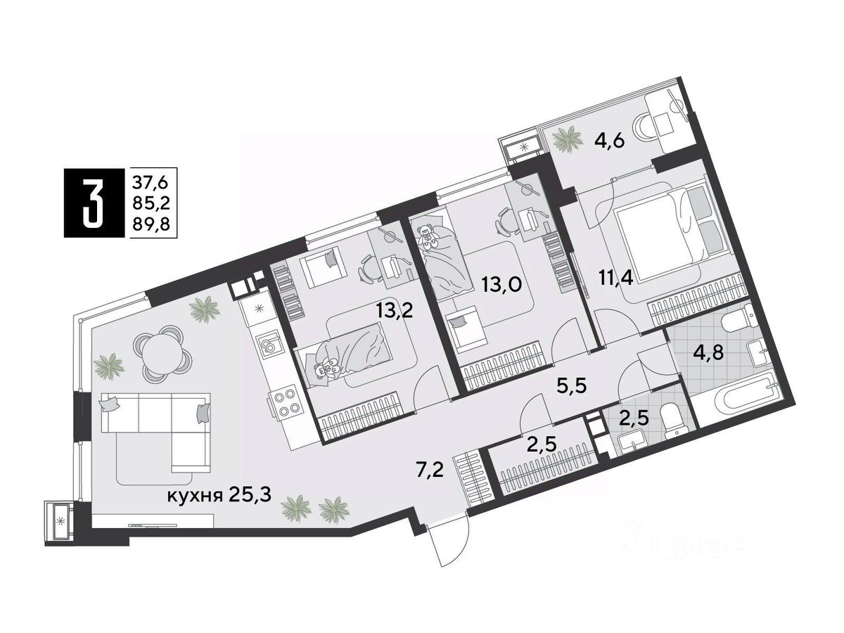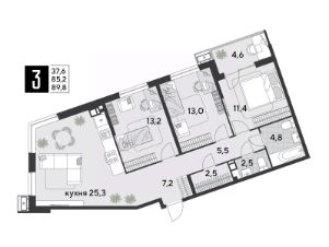 Срок сдачи: 1 кв. 2026, общей площадью 89.8 кв.м., на 5 этаже.