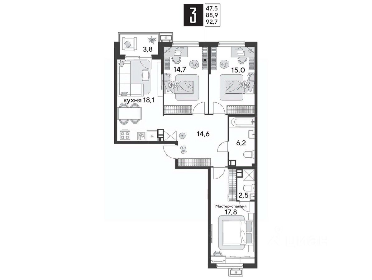 В продаже 3-комнатная квартира от застройщика! ЖК "Парк Победы 2", г. Краснодар, Литер 17