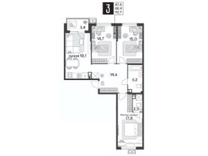 Срок сдачи: 1 кв. 2026, общей площадью 92.1 кв.м., на 4 этаже.