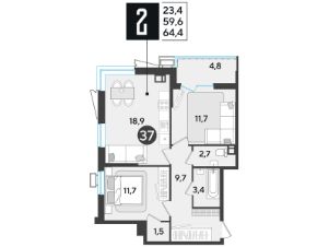 Срок сдачи: 1 кв. 2026, общей площадью 63.9 кв.м., на 6 этаже.