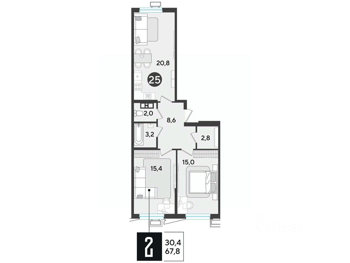 Срок сдачи: 1 кв. 2026, общей площадью 66.7 кв.м., на 10 этаже.