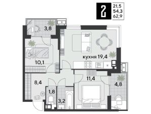 Срок сдачи: 1 кв. 2026, общей площадью 62 кв.м., на 13 этаже.