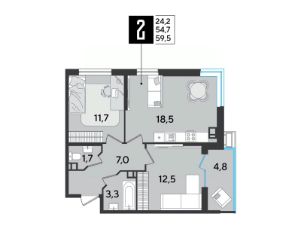 Срок сдачи: 2 кв. 2026, общей площадью 59.5 кв.м., на 3 этаже.
