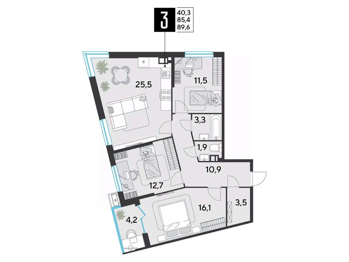 Срок сдачи: 2 кв. 2026, общей площадью 89.6 кв.м., на 9 этаже.