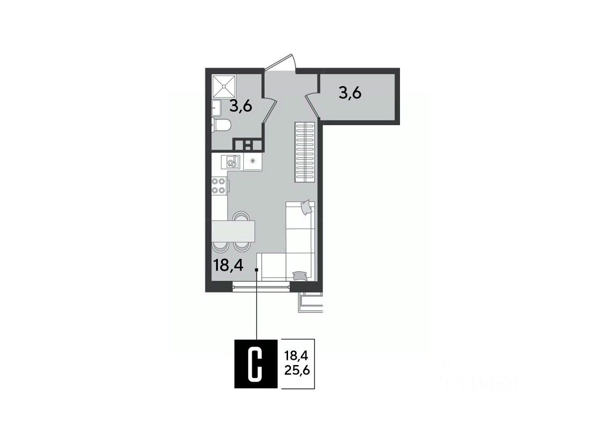 Срок сдачи: 2 кв. 2026, общей площадью 25.6 кв.м., на 8 этаже.