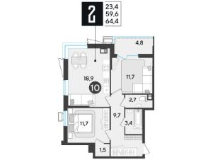 Срок сдачи: 1 кв. 2026, общей площадью 63.8 кв.м., на 11 этаже.