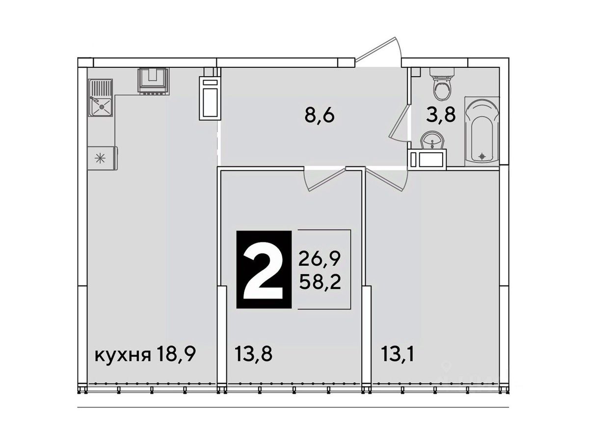 Общая площадь58,2 м²