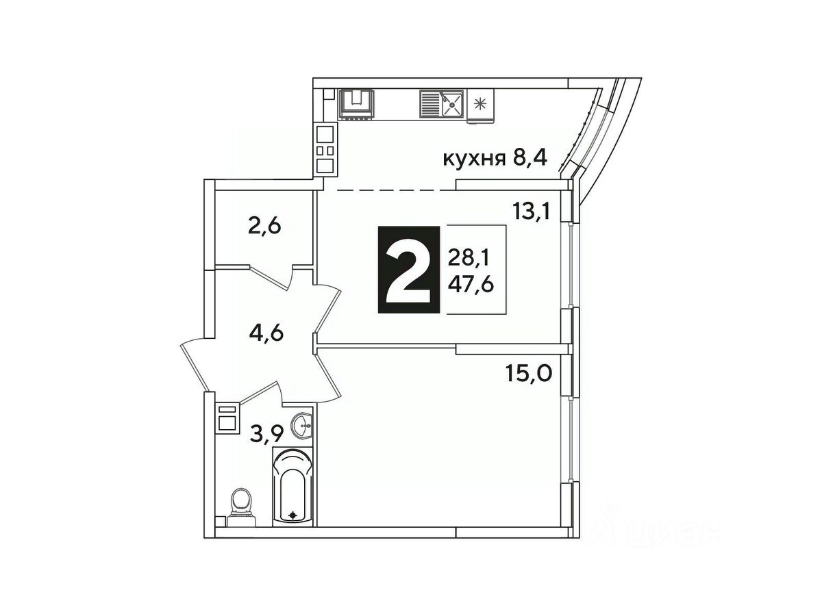 Общая площадь47,6 м²