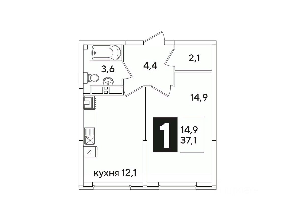 Жилая площадь14,9 м²