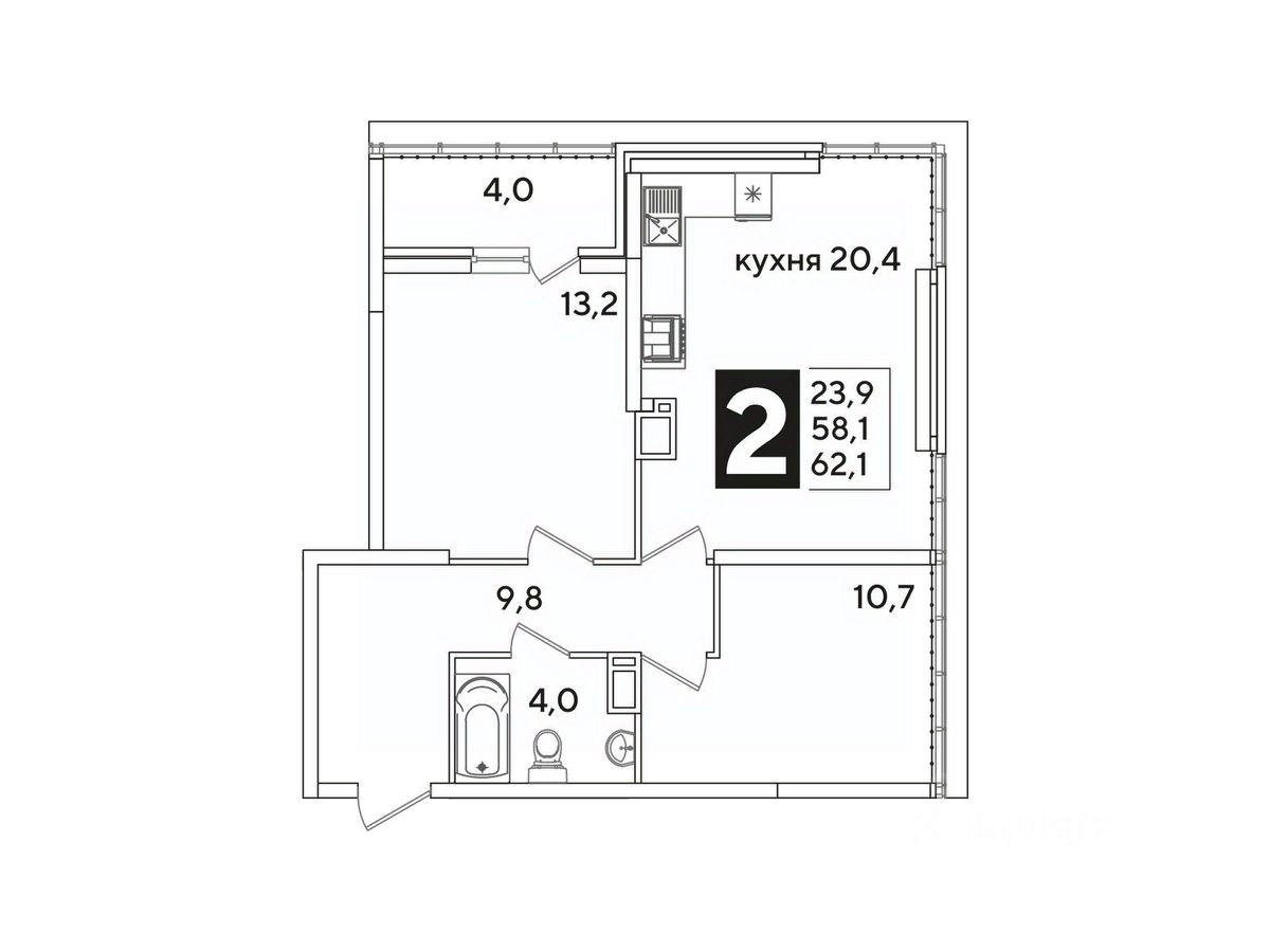 Общая площадь62,1 м²