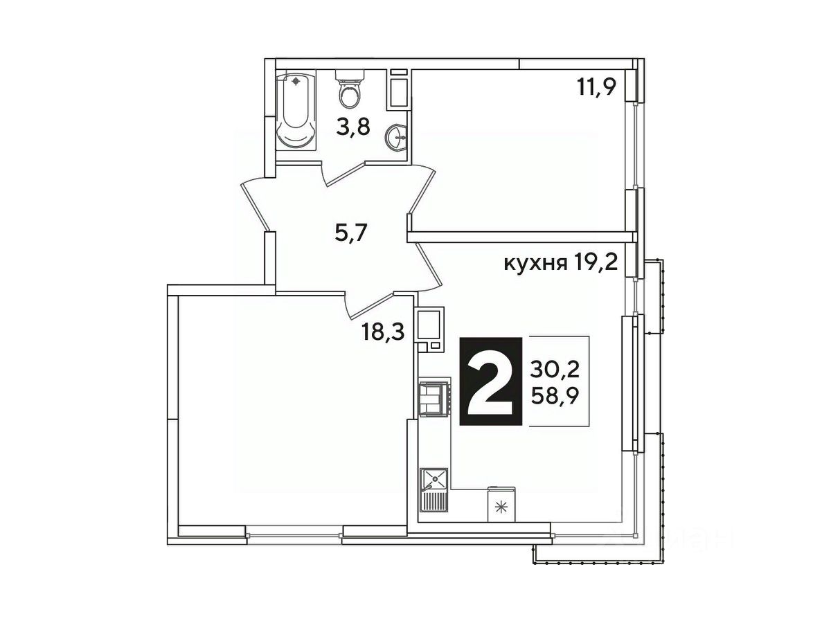 Общая площадь58,9 м²