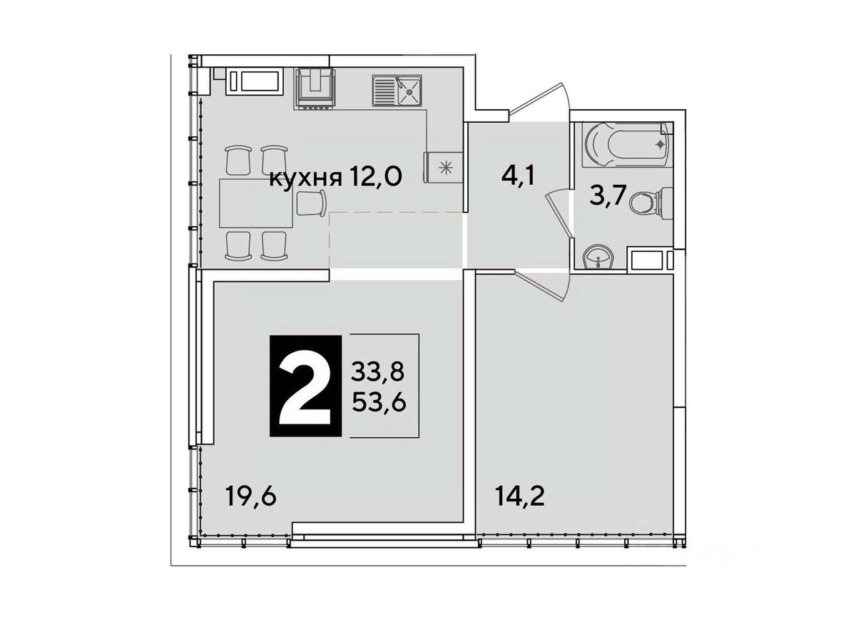 Общая площадь53,6 м²