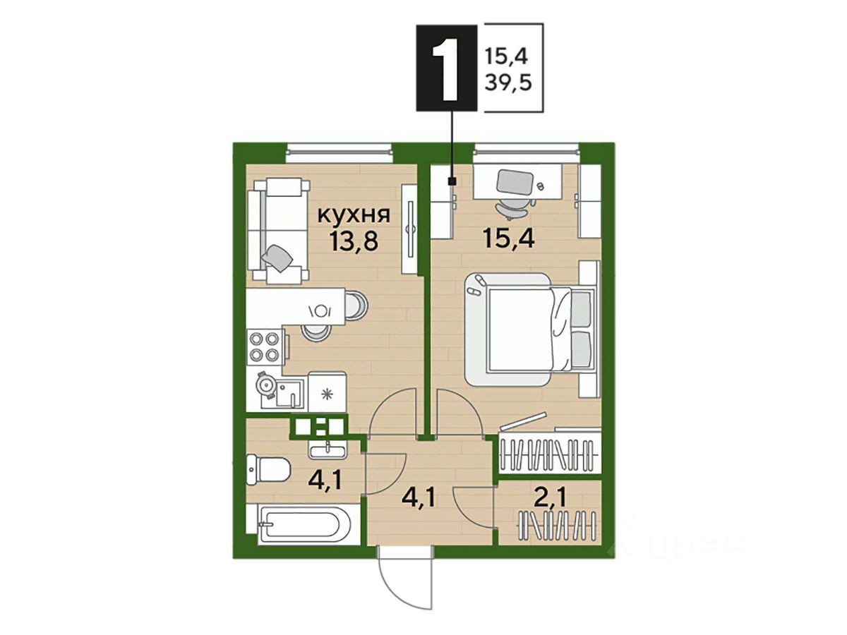 В продаже 1-комнатная квартира от застройщика! Мкр. "DOGMA PARK" г. Краснодар, Литер 18 Срок сдачи: 4 кв. 2027, общей площадью 39.5 кв.м., на 6 этаже.