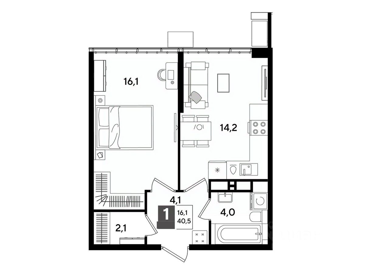 В продаже 1-комнатная квартира от застройщика! Мкр. "DOGMA PARK" г. Краснодар, Литер 18 Срок сдачи: 4 кв. 2027, общей площадью 40.5 кв.м., на 16 этаже.